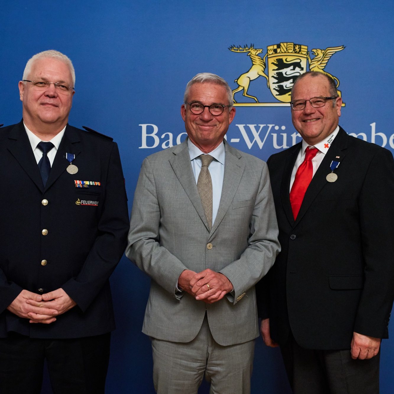 Am 24.03.2026 wurden die beiden Leiter des VOSTbw durch Innenminister Strobl mit dem Bevölkerungsschutz-Ehrenzeichen des Landes Baden-Württemberg geehrt.